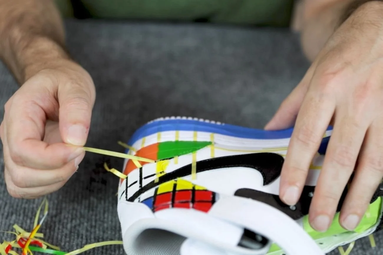 The inspo behind the second shoe design was a Rubik’s Cube. Yes, Rubik's Cubes span the generations, starting with the 80s, but they were still very much a thing in the ’90s, as well.